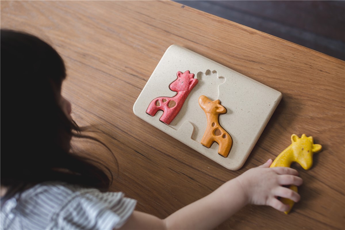 - Trae una base con 3 jirafas de PlanWood, material patentado por Plantoys