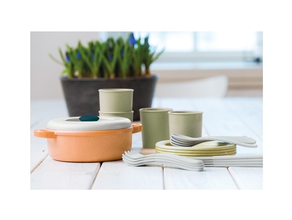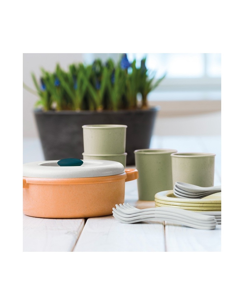¿A quién le toca cocinar la cena hoy? La mesa ya está puesta gracias a este set para cuatro comensales. Y lo mejor ¡es que es de plástico 100% reciclado!