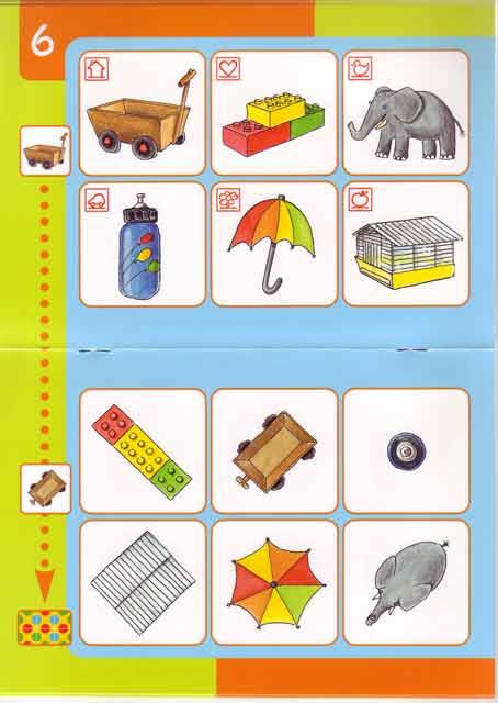 Con el cuadernillo Concentración 1 podrás identificar partes de una figura con la imagen completa o emparejar imágenes iguales cambiadas de posición, entre otras actividades.