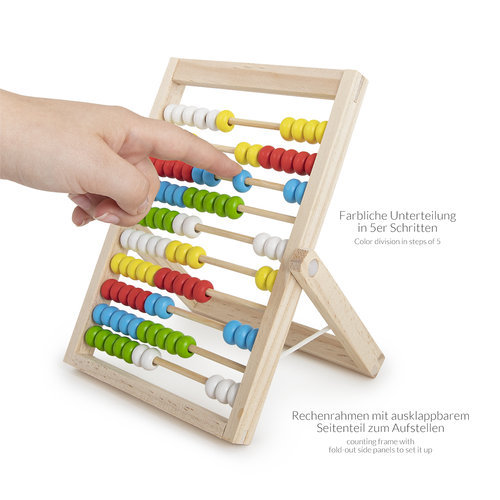 - Es de madera, incluidas las varillas por las que pasan las bolas (de 5 colores diferentes clásicos)