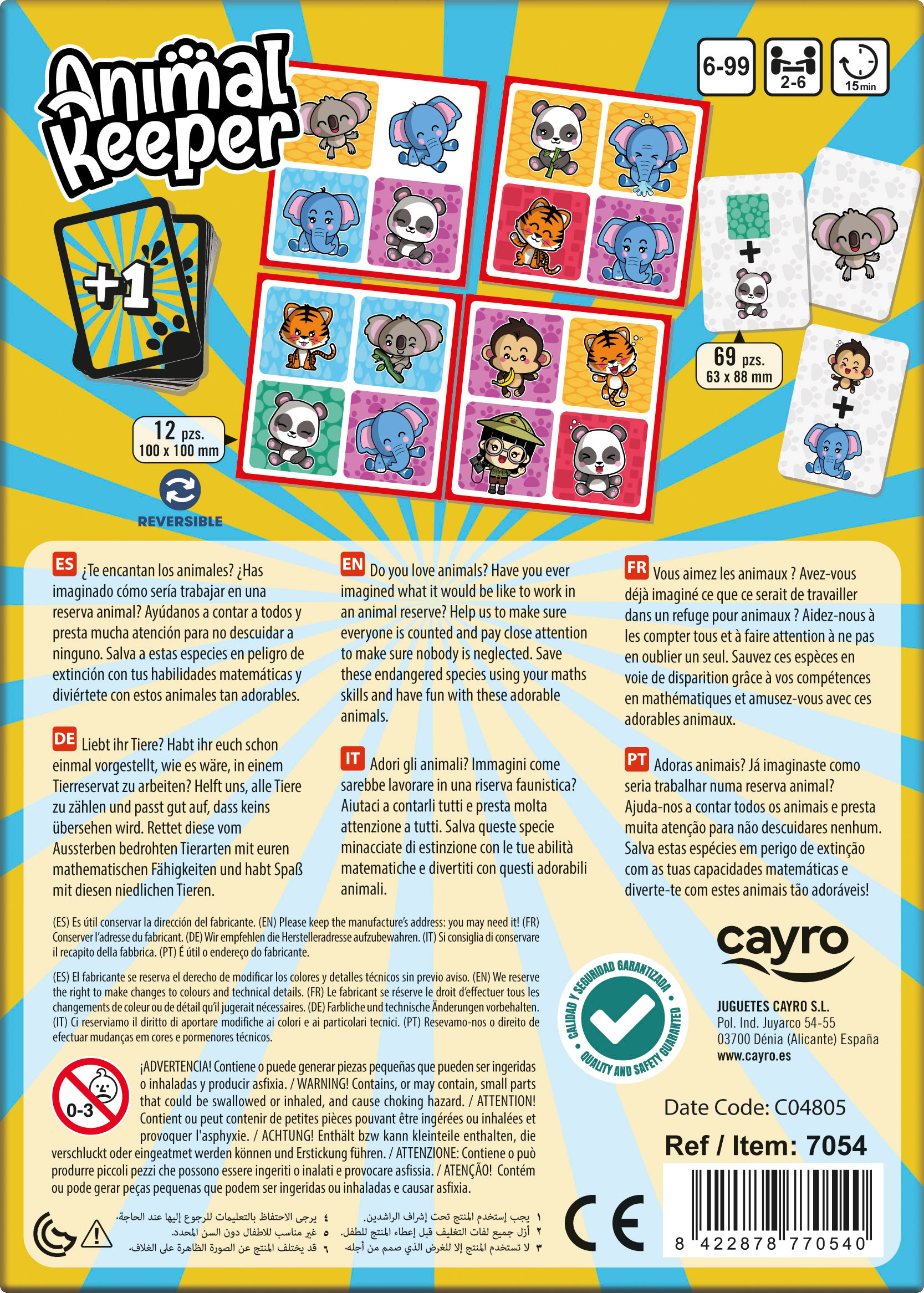 - Incluye 12 hojas de reserva animal cuadradas (con 4 personajes) y 69 cartas de reto