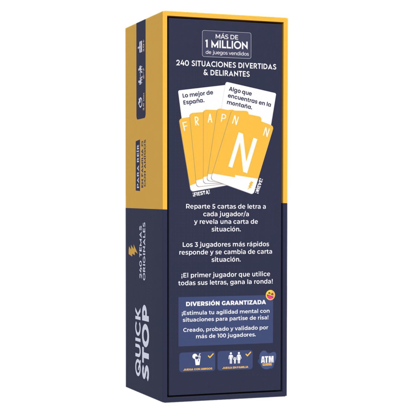 Con la categoría animales, y las letras que tienes en tu mano, ¿qué palabra se te ocurre? Tan sencillo como rápido, este party game os pondrá a prueba para ser el primer jugador que se quede sin cartas y puntuar lo menos posible. Para empezar reparte 5 cartas a cada jugador y ¡que empiece la diversión!
