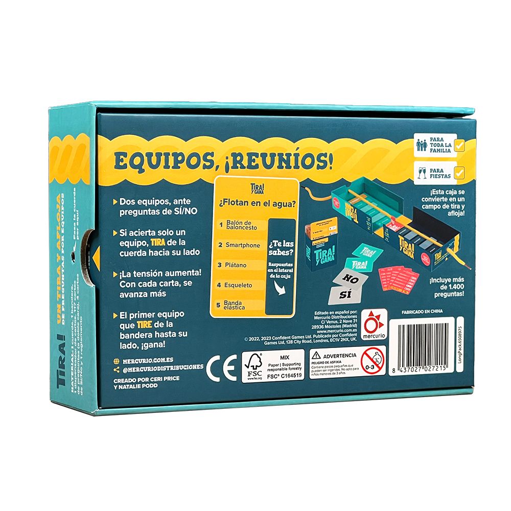 - Contiene 1 cuerda, 1 bandera, 1 dispensador de cartas, 117 cartas de preguntas a doble cara (más de 1400 preguntas) y 4 cartas de SÍ/NO