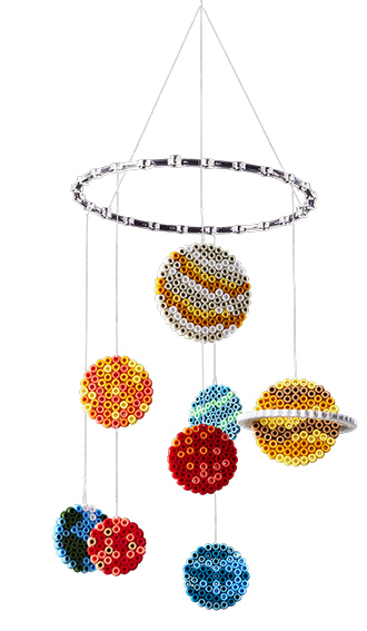 Con esta caja podrás crear tu propio móvil del espacio y aprender sobre los planetas. Una vez que tengas tu idea hecha, con un simple planchazo quedarán pegadas con una resistencia asombrosa.