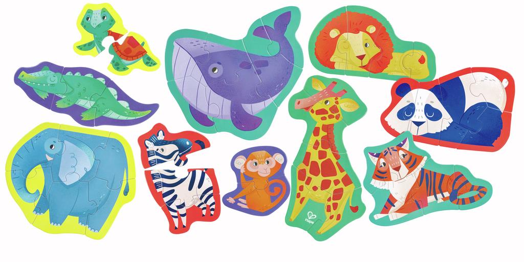 Estos animalitos habitantes de la jungla más profunda, necesitan de tu ayuda. Diviértete construyendo los diferentes animales y observando sus características. Los puzzles, planteados de forma progresiva, te ayudarán a desarrollar cada vez más soltura en el montaje de los mismos: empezando por dos piezas y aumentando, poco a poco, hasta llegar a 6.