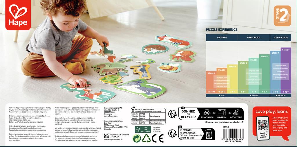Estos animalitos habitantes de los bosques más bonitos, necesitan de tu ayuda. Diviértete construyendo los diferentes animales y observando sus características. Los puzzles, planteados de forma progresiva, te ayudarán a desarrollar cada vez más soltura en el montaje de los mismos: empezando por dos piezas y aumentando, poco a poco, hasta llegar a 6.