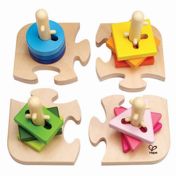 Si solo se tratase de un puzzle de cuatro piezas, resultaría demasiado fácil para los más pequeños, por eso este puzzle de clavijas ¡es todo un reto!