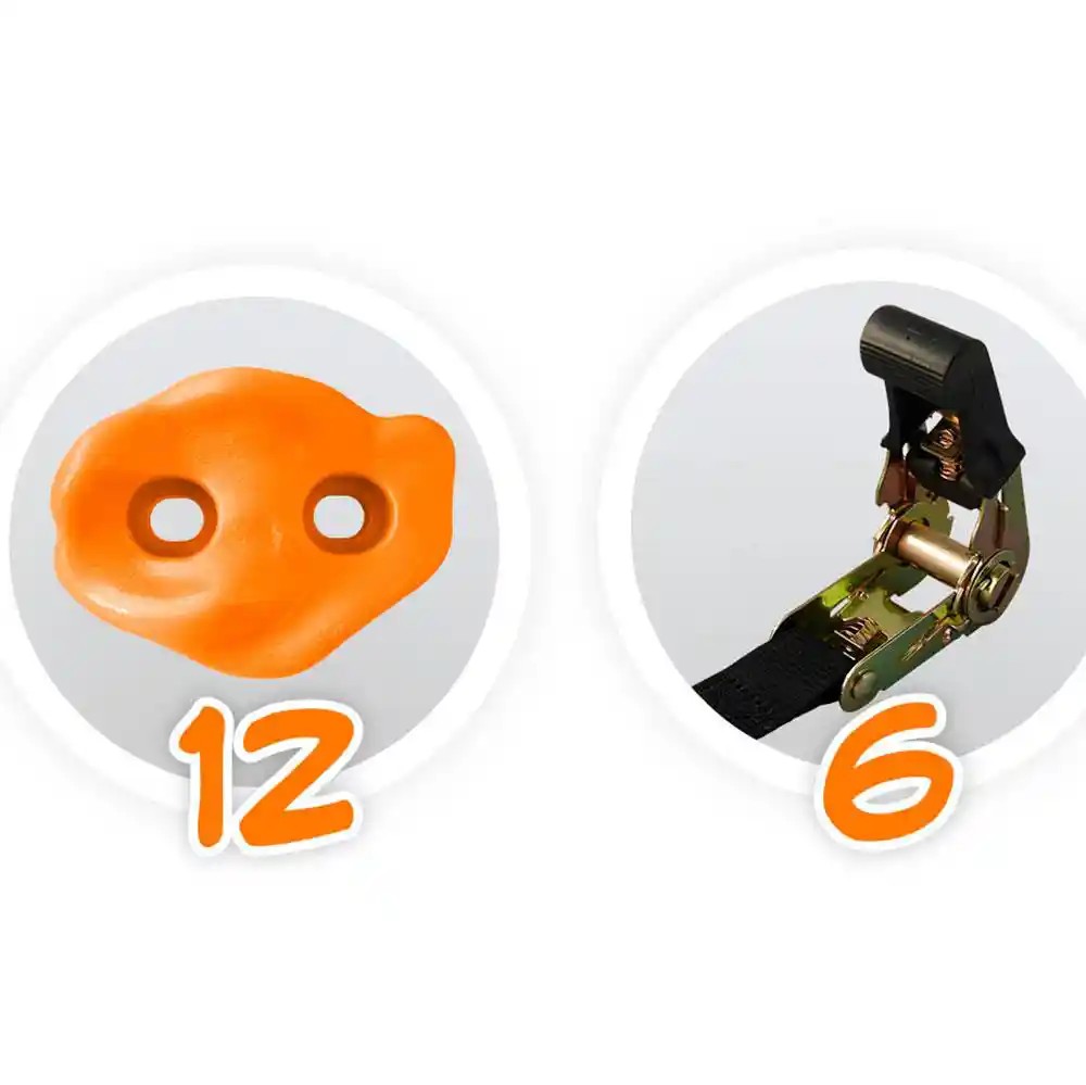- Inluye 12 presas de resina, 6 cinchas (con trinquete de seguridad) y una bolsa para transportar el set.