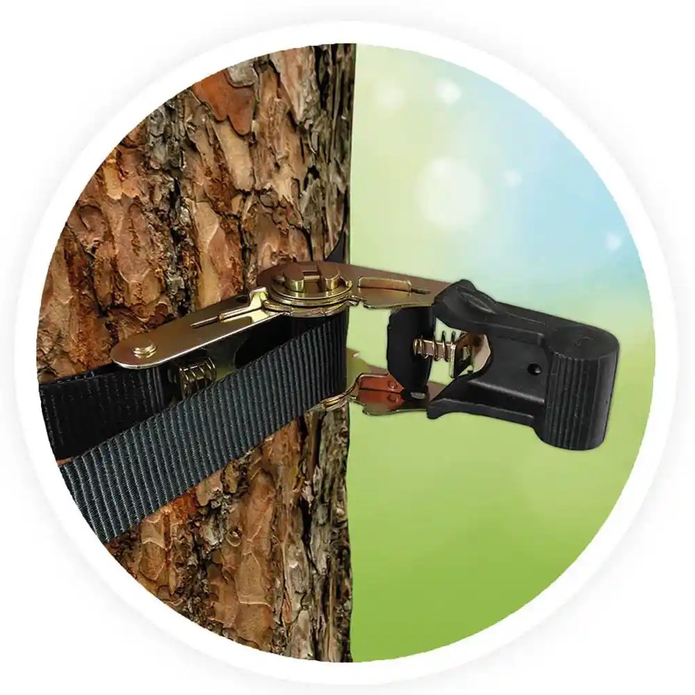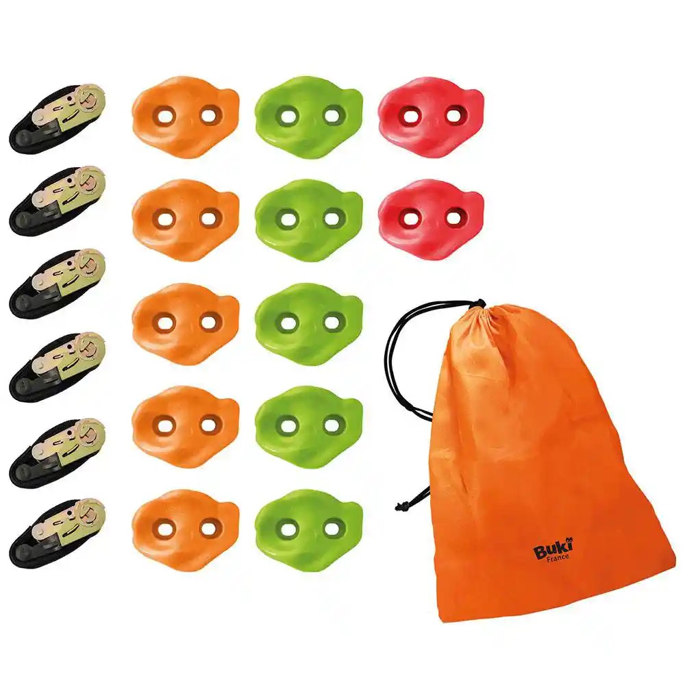 Este set de escalada te permitirá experimentar la adrenalina de escalar en cuestión de minutos, sólo tienes que ajustar las cinchas y presas al tronco de un árbol y.. ¡a la aventura!